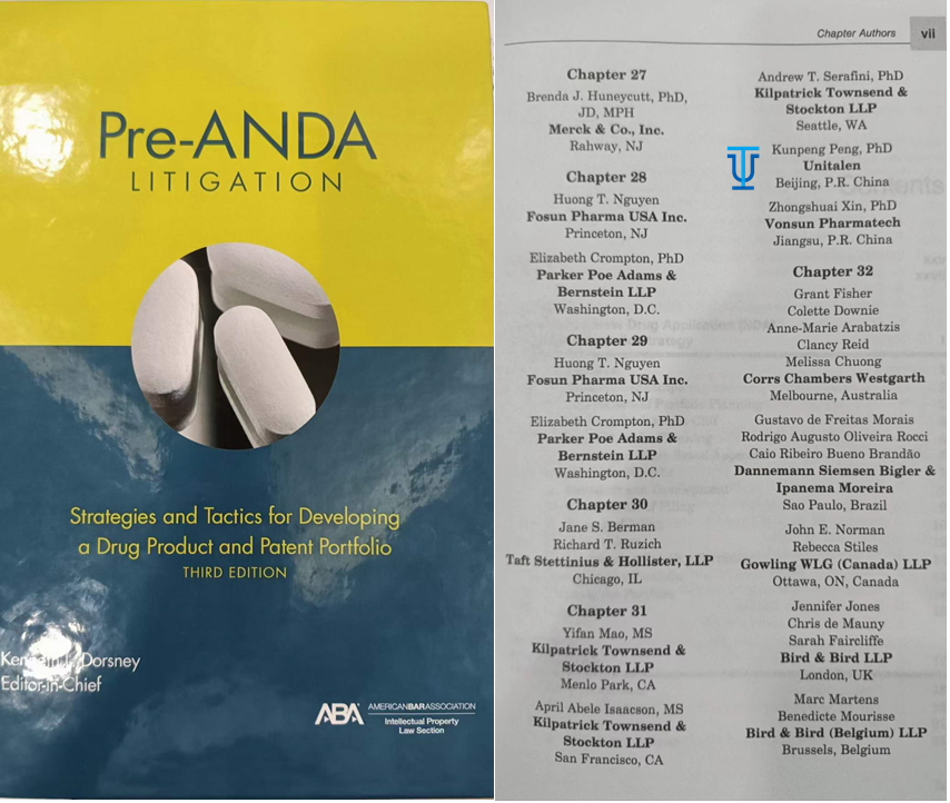 集佳合伙人彭鯤鵬博士參與撰寫(xiě)美國(guó)律師協(xié)會(huì)組織編寫(xiě)的仿制藥訴訟工具書(shū)