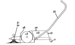 | 40 | 實用新型 | 手推式掃地車 | 一種手推式掃地車,它屬于一種掃地工具,尤其是一種人力手推、機械運動對地面進行清掃的手推式掃地車。本實用新型旨在解決現(xiàn)有清掃工具各自存在的適用范圍窄、成本昂貴、耗費人力、清掃效果差的缺陷,其技術(shù)方案是:該掃地車包括機殼(28)、扶手(29)、垃圾存儲箱(23)、主動滾輪(13)、滾刷(14、15),滾刷(14、15)位于機殼(28)內(nèi),滾刷軸與位于其兩側(cè)的主動滾輪(13) 軸齒連接,主動滾輪(13)的轉(zhuǎn)動帶動滾刷(14、15)運轉(zhuǎn),垃圾存儲箱(23)位于滾刷(15)后方,為增強清掃效果在機殼前方還設(shè)置有一對向內(nèi)旋轉(zhuǎn)的盤刷。 | ![]() |
