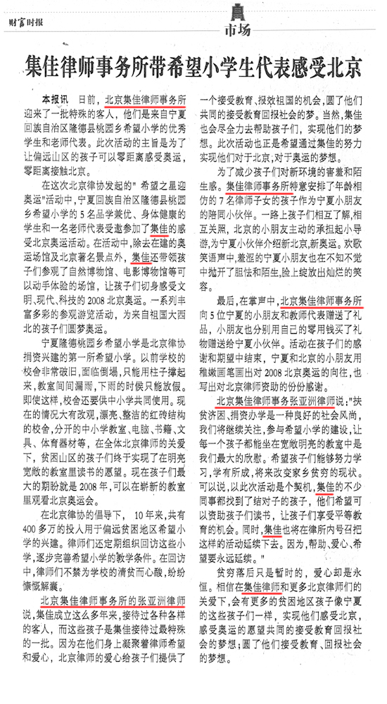 《財(cái)富時(shí)報(bào)》:集佳律師事務(wù)所帶領(lǐng)希望小學(xué)代表感受北京
