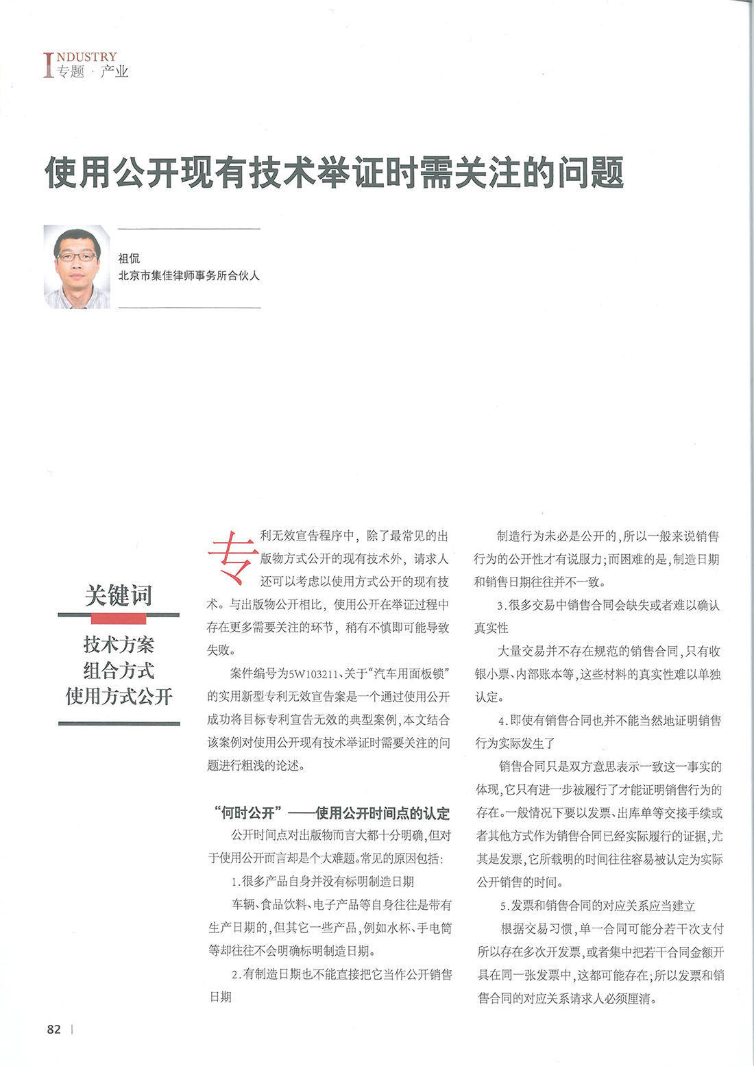 集佳文章《使用公開現(xiàn)有技術(shù)舉證時需關(guān)注的問題》在《中國知識產(chǎn)權(quán)》發(fā)表