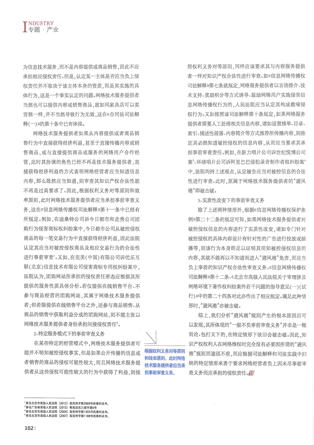 集佳文章《擊破“避風(fēng)港”的三種情形——解析特定情形下網(wǎng)絡(luò)技術(shù)服務(wù)提供者的事前審查義務(wù)》在《中國知識產(chǎn)權(quán)》發(fā)表