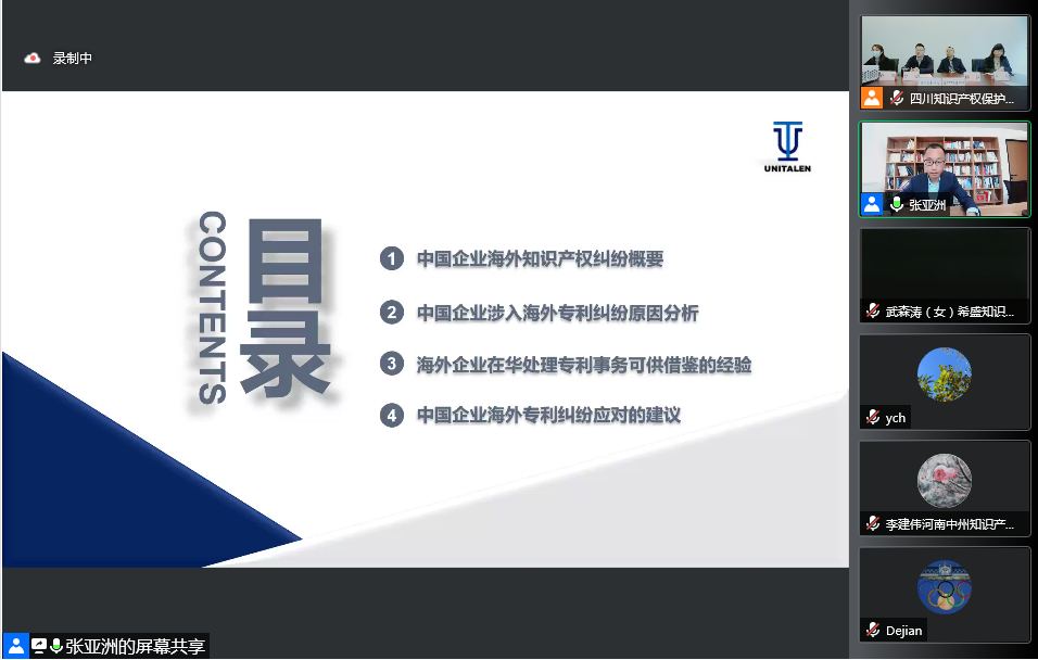 2022年4月20日,由中國(四川)知識(shí)產(chǎn)權(quán)保護(hù)中心、國家海外知識(shí)產(chǎn)權(quán)糾紛應(yīng)對指導(dǎo)中心四川分中心、四川省專利協(xié)會(huì)主辦,北京集佳知識(shí)產(chǎn)權(quán)代理有限公司協(xié)辦的“中國企業(yè)如何有效應(yīng)對海外專利糾紛”專題培訓(xùn)線上分享會(huì)成功舉辦。