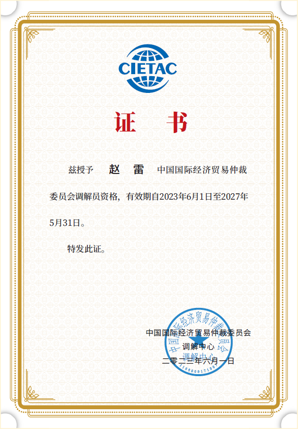 近日,集佳高級合伙人趙雷律師受聘擔(dān)任中國國際經(jīng)濟(jì)貿(mào)易仲裁委員會新一屆調(diào)解員。