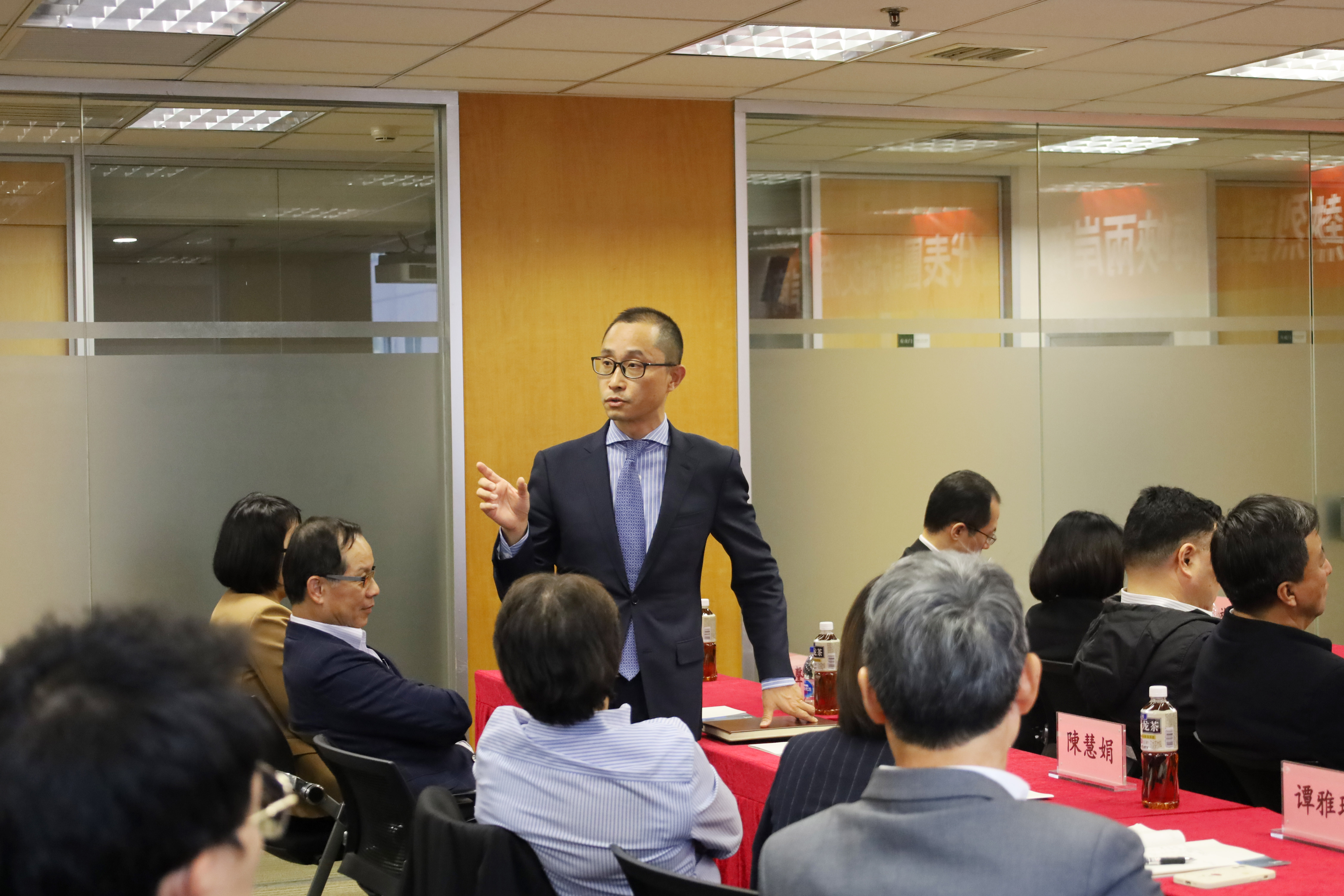 于澤輝所長對代表團(tuán)蒞臨集佳考察表示熱烈歡迎,并與海商會(huì)副會(huì)長王桂良先生、副會(huì)長兼秘書長黃旭昇先生互相交換禮物。